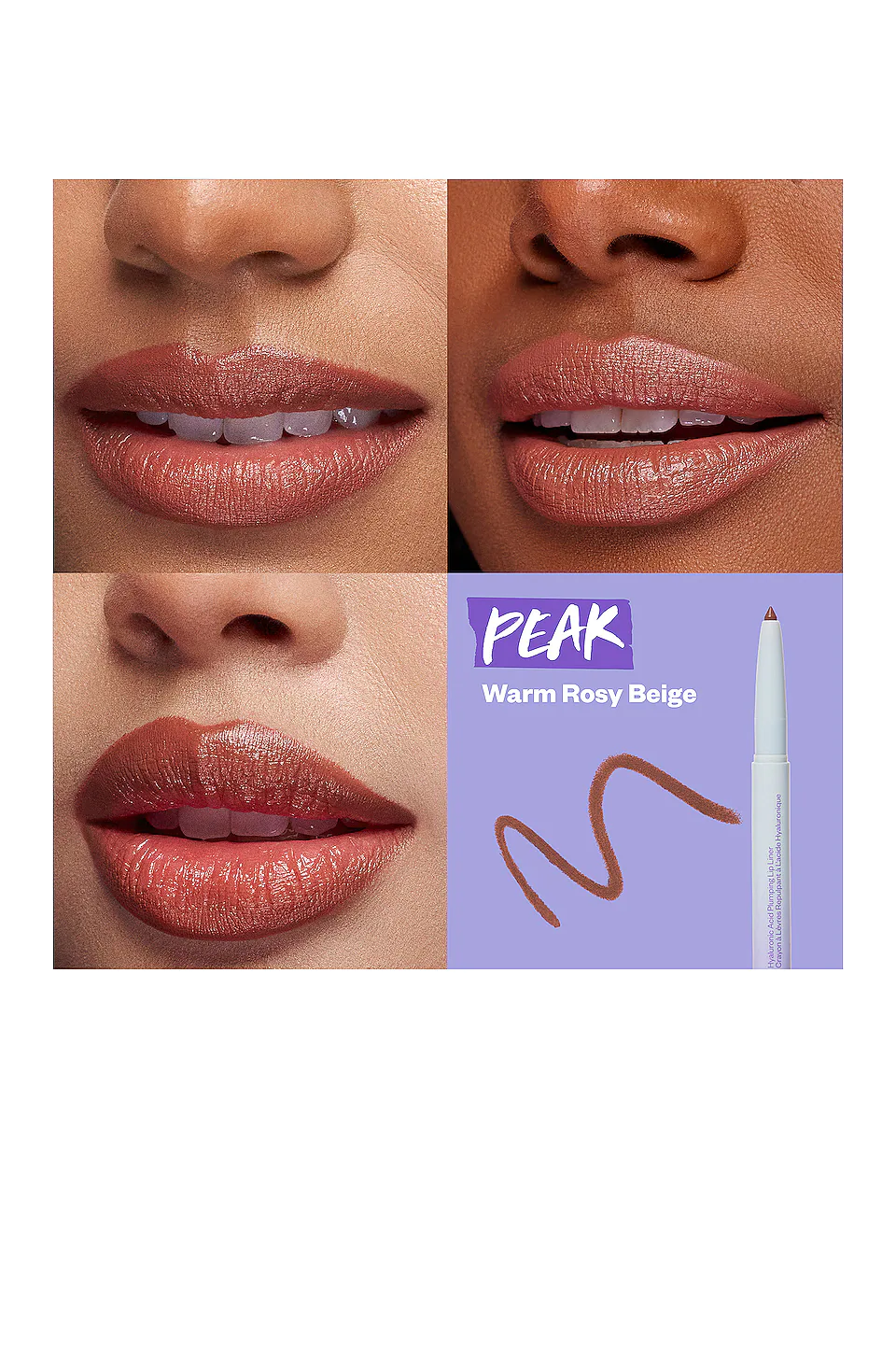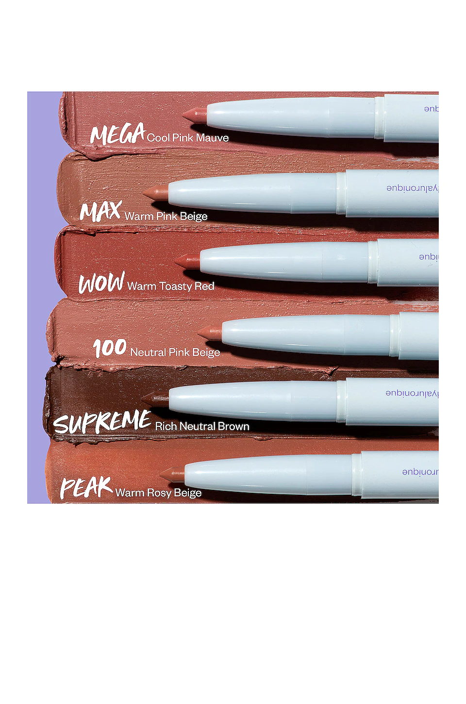Clean, comfy, smooth retractable lip liner powered by Hyaluronic Acid glides on to softly contour and amplify lips without drying.