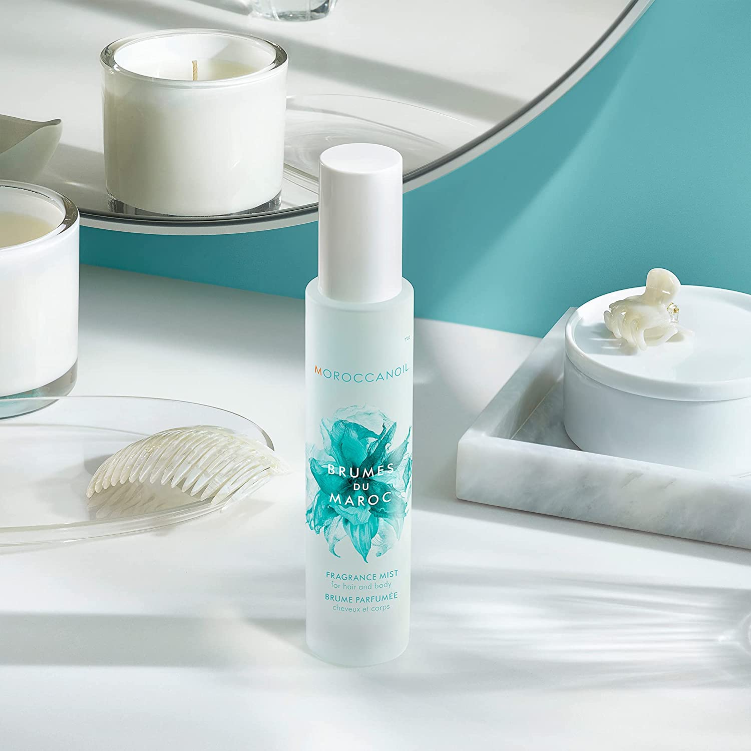 Fragrance Description: Brumes du Maroc Hair and Body Fragrance Mist features the signature Moroccanoil scent, an exotic blend of spicy amber and sweet floral notes. The lightweight, hydrating formula contains argan oil and Vitamin E, as well as a UV absorber that helps prevent hair damage from sun exposure.